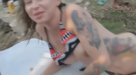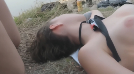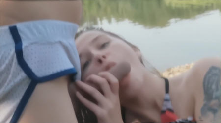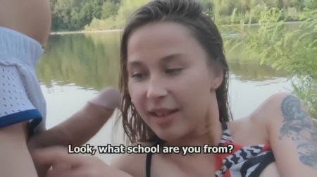 Парнишка пришел покупаться на речку и заметил, что его знакомая отдыхает тут же, крепко уснув на полотенце. Он поглядел на ее сиськи, а член как-то сам возник над ее лицом. Лучшая хуесоска всей школы проснулась, немного напугалась и задала логичный вопрос: "какого хуя ты тут делаешь и почему сверкаешь писькой, когда за спиной вон люди купаются, буквально в двадцати метрах". Но сама юная шлюшка решила взять в рот публично, никого не стесняясь, дав кончить на свои сиськи. Сразу после этого пацан побежал прочь, так как не хотелось бы ему связываться со всякими шалавами, он один у мамки.