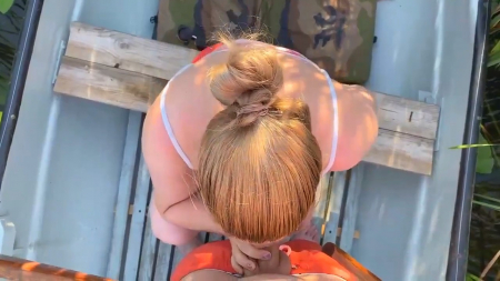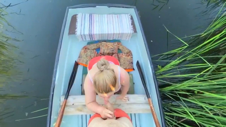 В хорошую летнюю погоду двое отплыли от своей дачи в ближайшие кушари озера. На заднем фоне слышны другие голоса, звуки моторов лодок, но это точно не остановит любовников, чья основная задача на данном видео - поебаться вдоволь и не быть застуканными. Самка открыла взору большую натуральную грудь, после чего моментально оказалась сверху на члене. Чуть позже она встала на колени и покачивающимися движениями начала насаживать вагинальное отверстие на длинный тонкий член. Парню пришлось самому дрочить, чтобы достичь оргазма, благо вид на пышную жопу ему достаточно помог.