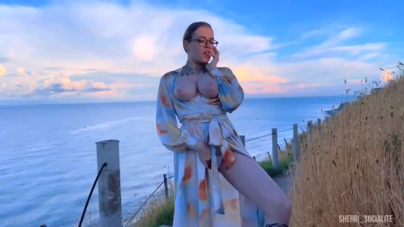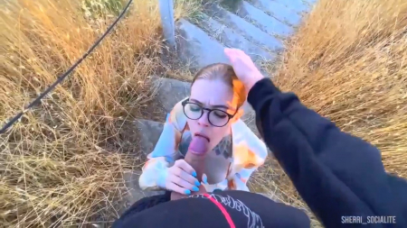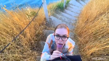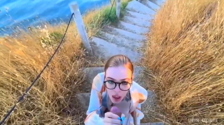 Красивая девчонка в легком платье как обычно возбуждена, а тут еще и прелестное место нашлось без людей. Вывод только один - придется здесь остановиться и заполнить сексуальную пустоту в теле. Начала сама заграничная россиянка с показа груди и мастурбации влажной писечки между ног, после чего симпатяга в очках присела на корточки для минета, а потом загнулась, схватившись за уцелевший столбик, головой развернувшись к водной глади. На все выделено очень мало времени, потому она быстренько вновь берет дело в руки и отдрачивает готовый взорваться от напряжения пенис до оргазма на тропинку.