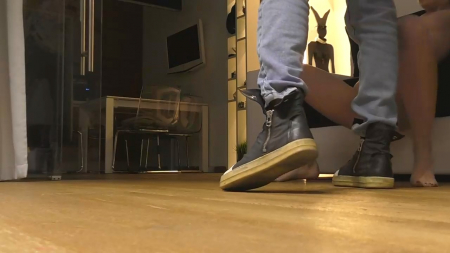 Извращенцев в мире много, но редко они такие хорошенькие. Милую девушку-рабыню привел за волосы к дивану ее бойфренд в кедах, которых дал ей время расположиться с раздвинутыми ногами и вскоре произошел первый удар в пах красавицы. Она тяжело застонала, попочка с гладенькой писей поднялись наверх от напряжения, но она готова принять еще сколько ударов на себя, ведь садомазохистка получает колоссальное удовольствие только через боль. Еще несколько пинков и, кажется, девчонка вот-вот кончит, но напряженные трясущиеся ножки сильно отвлекают от оргазма.