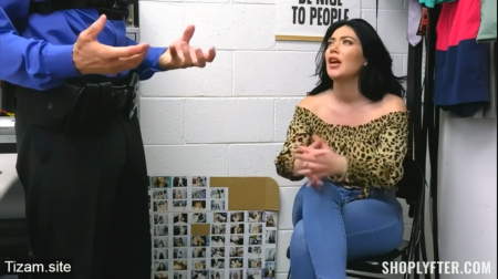Чем дольше никого нет в комнате охраны, тем сильнее нервничает попавшаяся магазинная воровка. Охранник наконец-то пришел и, к радости задержанной, это был ее старший брат, который не любит кумовство, поэтому сразу отказался выручать дуру. Все дело в том, что она попалась на камеры, где было отчетливо видно как она ворует браслет, точь-в-точь как у матери. Пару недель назад сестра взяла его у мачехи и потеряла, а теперь пришлось пойти на такой поступок, так как не было денег возместить ущерб. В каморке тоже везде видеонаблюдение и оно слышало признательные показания. Но есть один вариант искупить вину, чтобы сводный родственник не пустил дело в оборот. С отвращением, но сисястая согласилась отдаться после того как ее полностью раздели при личном досмотре.