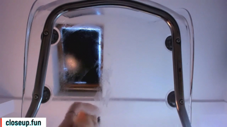 Тыкает киску на прозрачном стуле с видом снизуHD