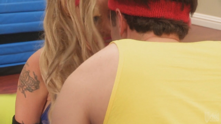 Татуированная блондинка работает тренером по аэробике. Девушка проводит не только групповые занятия, но и индивидуальные. Вот сейчас как раз сексуальная чика проводит занятие с молодым парнем. Мужчина мгновенно возбуждается при виде милашки в сплошном купальнике, который только подчеркивает тонкую талию и большую аппетитную грудь. Мужчина просто с великим удовольствием наблюдает за тренером и повторяет каждое движение. Между парочкой промелькивает такое напряжение и сексуальное влечение, что ребята не выдерживают и трахаются в зале.