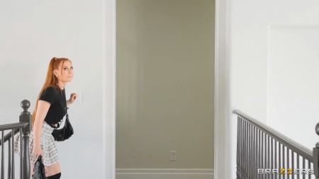 Очередь из почитательниц красивых фотографий почти закончилась и под самый конец туда прибежала энергичная рыжая девушка в короткой юбке и гетрах. Она очень просила ее сфотографировать, но охраннику пришлось выставить девку за неподобающее поведение, так как она пыталась схватить за член фотографа. Тогда она пробралась через калитку на заднем дворе и была застукана секьюрити внутри дома. Шлюшка показала сиськи, легла на пол и раздвинула ноги, после чего мужчина повел ее в одну из спален, где к ним присоединился подкаченный наниматель охранника, так как одному справиться с такой блядью просто невозможно физически.