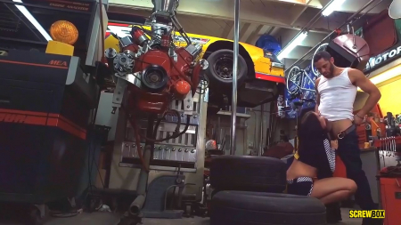 Самовлюбленный гонщик с большим стажем обрадовался новому автомобилю и времени, за которое он проехал свой лучший круг. Но радость резко прекратилась когда на дистанции появилась красивая соперница на своей улучшенной тачке. Она предложила устроить соревнование, чтобы уже наконец-то решить кто достоин подписать контракт. Естественно, парень проиграл и отправился печалиться в мастерскую, чтобы собственноручно проверить спортивный автомобиль и стать только лучше в будущих соревнованиях. Туда же следом отправилась сексапильная гонщица, подарившая анальный утешительный приз на лежащем на полу колесе.