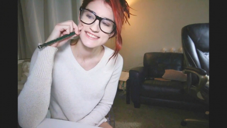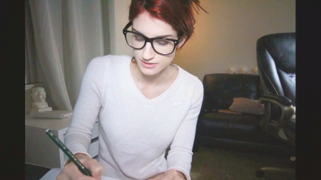 Сон еще был недосмотрен, но уже кто-то пишет сразу три текстовых сообщения на телефон и предлагает встретиться. Героиня отвечает, что только проснулась, тогда человек на другом конце просит ненадолго включить какую-нибудь видеосвязь, типа скайпа. Надев только кофточку, симпатяга в очках недолго разговаривает и начинает мастурбировать сперва вибратором, доведя им себя до оргазма, а потом долго прыгает на прозрачном стуле с прикрепленным к нему большим фаллоимитатором, от которого няшка вообще обильно обкончалась сквиртом, порадовав друга, все это время следящего за происходящим.