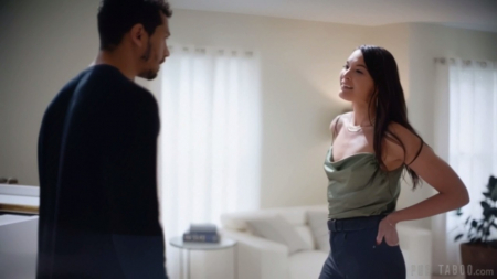 Увидев кто стоит за дверью, хозяйка сразу захотела ее закрыть. Все потому, что там стоял брат мужа, который должен был сесть за решетку вместо супруга, но араб пошел на сделку со следствием и остался на свободе, а теперь хочет все исправить, ведь он был всегда влюблен в жену своего брата, они даже как-то вместе спали, но девушка все никак не хотела сознаваться во взаимной любви, до сегодняшнего разговора наедине. Ей будет тяжело содержать саму себя и детей десять лет, ей будет не хватать хорошего секса, а у гостя есть большущий смуглый член, который она хочет, но молчит. Пора открыться, предаться любви и, наконец, забыть про своего сидельца, наслаждаясь настоящим вниманием и заботой.