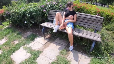 Прогулялась по европейскому городу с дилдаком в руках, чтобы подрочить в парке на лавкеHD