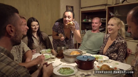 Большая компания взрослых людей собралась отметить за общим столом скорое рождение ребенка одной из присутствующих. Неожиданно у нее отошли воды и самая грудастая гостья не смогла сдержать рвотные позывы, срочно побежав проблеваться в унитаз. Следом за ней отправился мужчина, сидевший напротив. В туалете он пристроился сзади к блондинке и засадил в ее пилотку, зажав рот рукой. Та не была особо против резкого соития и получила массу удовольствия, а за всем происходящим пронаблюдала хозяйка, решившая разузнать куда подевались сразу двое. Когда они вышли, смогли поздравить семью с рождением ребенка.
