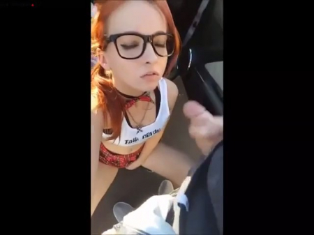 Облагородив залупу водителя по пути минетом и надрачиванием шкурки, рыжая девчоночка в очках вышла из машины на обочине и спряталась за открытой дверью автомобиля, трогая себя в промежности пока ее молодой человек теребит хуй рядом с лицом симпатяги. Через несколько секунд он кончает на высунутый язычок малышки, снимая на мобильный телефон. Она делает вид будто пытается проглотить малафью, а сама выплевывает ее на асфальт, показывая свое милое лицо крупным планом.