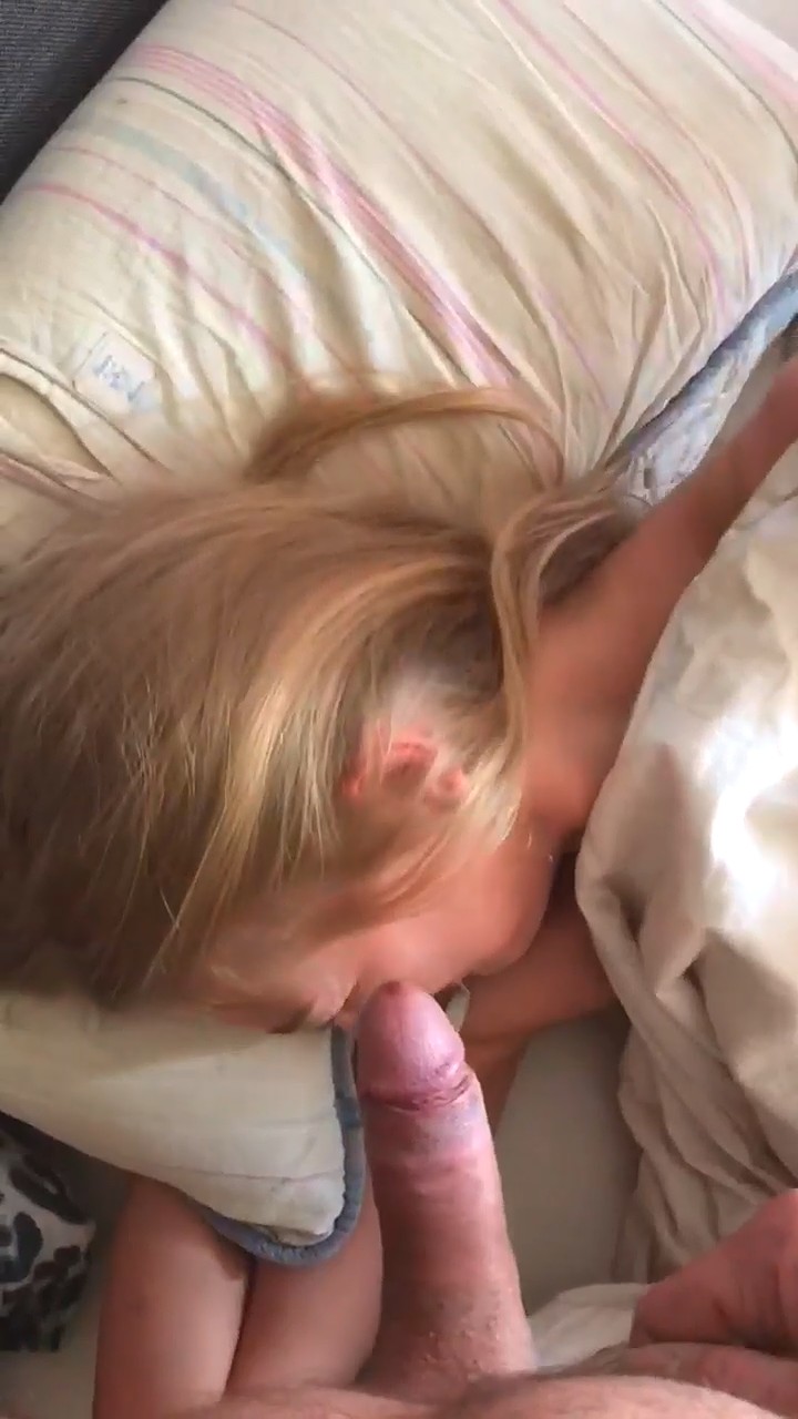 Пара уже достаточно давно живет вместе, поэтому парень ничего не стесняется, связанного с сексом с подружкой. На этот раз он, вооружившись мобильным телефоном и включив на нем запись видео, подошел к своей любимой и начал дрочить член рядом с ее головой. Она на данный момент все еще спала и вот-вот готова была проснуться, но он ускорил процесс, кончив на лицо с закрытыми глазами. Даже не удивившись, милая хотела пожелать доброго утра, но произнесла только "Oh, my God!".