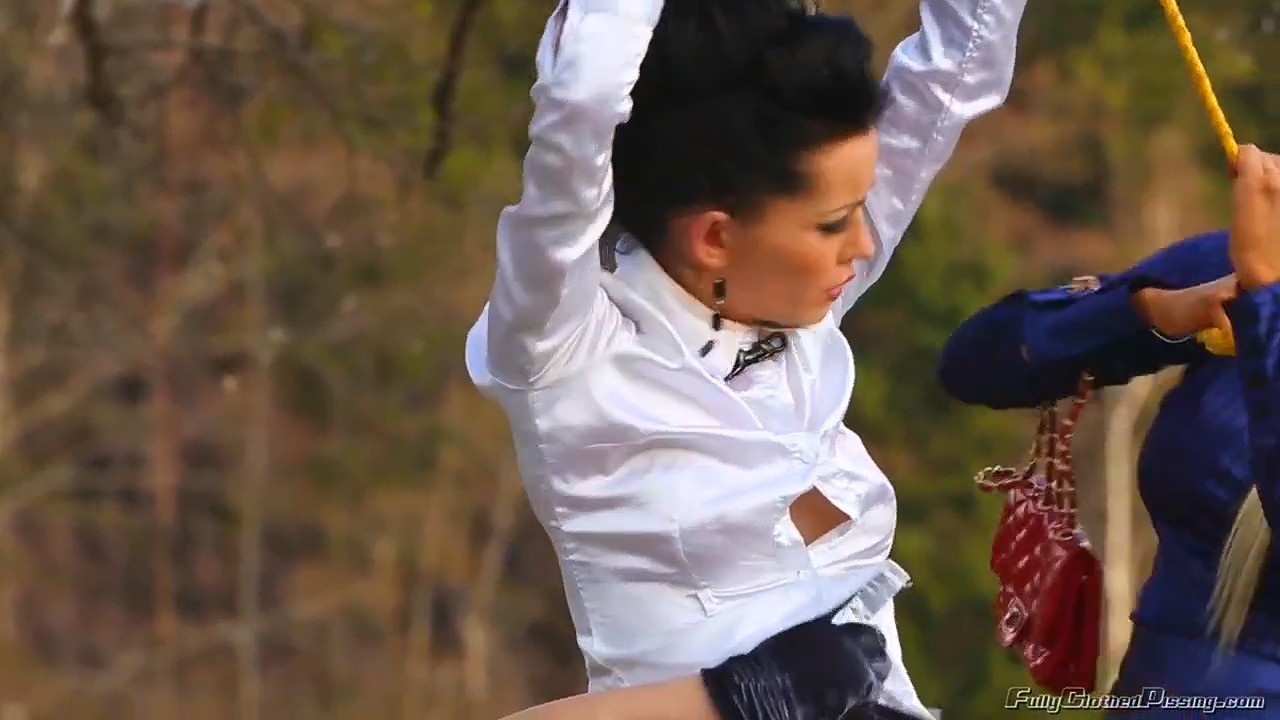 Подружки подговорили свою знакомую встретиться в указанном месте в лесу, она должна была ждать их возле определенного дерева. Увидев, что она точно пришла одна, знакомые схватили руки брюнетки и привязали к дереву повыше, чтобы она не могла сопротивляться их принудительному лесбийскому сексу с писсингом и мастурбацией самотыком. Телочка поначалу не хотела, чтобы извращенки ее насильно трахали и заставляли лизать, но потом гетеросексуалка смирилась со своей участью испробовать трах с другими девушками и даже в ответ их обоссала, сев возле деревца поплакать.