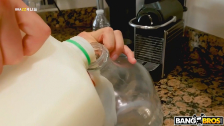 Парнишка в кепочке только вернулся с учебы и сразу кто-то постучал в дверь. Это была новая соседка, собравшаяся испечь пирог, но у нее не хватило молока. Немного зависнув глазами на большом бюсте незнакомки, мальчик все же провожает сексапильную женщину на кухню и мило наливает молочко в ее сосуд. Дама же за спиной расстегнула верх и вывалила сиськи наружу, чем немного смутила мелкого засранца. Есть еще кое-что вкусное вприкуску с молоком - женская пизда, а значит ему можно впервые попробовать столь сладкий десерт, отымев знойную шлюшку на кухне родителей, пока их нет дома.