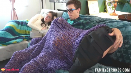 Братик-ботан вечно достается свою сводную азиатскую сестру тем, что он лучший в семье и ей требуется конкретная аргументация, чтобы это опровергнуть. Сейчас на дворе недрочабрь и парень держался до последнего, пока хитрая сестренка не начала его дразнить дрочкой и минетом при матери, вошедшей в комнату и не заметившей голый член в ротике дочки за экраном ноутбука. Женщина пригласила отпрысков посмотреть вместе фильм и они действительно отправились в гостиную для этого, но малышка в очках не упустила шанс снова возбудить брата, чтобы он кончил, правда, для этого понадобилось сделать так, чтобы он трахнул ее сочную дырочку через прорезанные колготки при уснувшей матери, да и так и не выяснилось кто первый кончил, так что оба очкарика проиграли.
