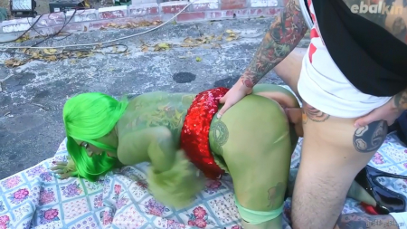 С невероятно тугой задницей и киской она бежала навстречу утреннему свету. Гринч поняла, что нельзя быть по жизни такой жадной и она хотела дать анальный секс нуждающимся. Гринч действительно хотела помочь кому-то и случайно она нашла очень привлекательного бомжа. -"Привет, красивый мужчина! Я хочу чтобы вы выебали меня так сильно, как сможете!". -"Вообще-то я хотел бы просто поесть, но должен сказать, что это одинаково хорошо". -"Спасибо вам, сэр, и скажу вам, что даже позволю засунуть его мне в задницу". С этого момента зеленое создание трахается с бездомным, выполняя и свое и его желание как следует грязно поебаться прямо на улице.