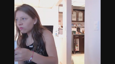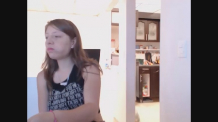 Симпатичная очаровашка сначала просто общается по веб-камере, но потом начинает потихоньку теребить киску. Делать это прелестной девушке нужно предельно осторожно - ведь буквально в нескольких метрах от девушки стоит мать, спасает только то, что матушка стоит к своей распутной дочери спиной.