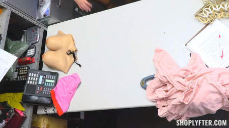 Новый день - новая девица в кабинете начальника охраны магазина. Полумент все время пугает настоящими полицейскими девушек, которые чаще всего оказываются виновны в кражах, но до последнего не сознаются. Вот и в этот раз подозрительная азиатка вошла в примерочную с коробкой, а вышла без нее. Дошло до того, что мужчине в синей рубашечке пришлось полностью раздеть воровку, укравшую накладные сиськи из-за маленьких своих собственных. Ей просто было стремно признаться и сказать: ну да, я спиздила резиновые сиськи с набухшими сосками, чтобы скрыть свой недостаток. Теперь ей придется отработать, чтобы не залететь на статью, а заодно получить комплимент на счет внешности от интригана.