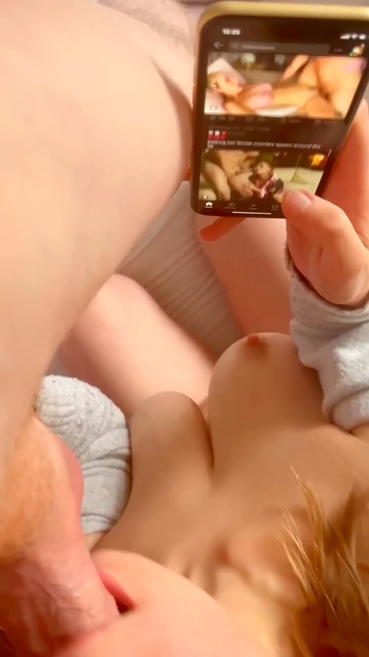 Миленькая извращенка пролистывает такие же короткие ролики как этот на телефоне, останавливаясь только на тех, где девушки делают минет, очень глубокий минет. Сама же героиня, увидев как работают другие, повторяет на пенисе бойфренда, но работая еще лучше, так как при заглоте со звуками не касается губами ствола, а уже когда голова идет обратно, схлопывает губки, отчего парень застонал от неимоверного кайфа. Вот только знать бы как зовут эту дивчину или пару, дабы добавить с ними еще интересненького, явно пошлая малышка любит все, что связано с сексом.