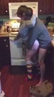 Женщина с большой задницей сложилась практически в пополам на кухне, когда ее сзади поебывает любовник на фоне кухонных принадлежностей. Все происходящее снимает уже старенький муж, иногда комментируя грубым басистым голосом. На него любовник совершенно не обращает внимания и просто наслаждается довольно гибкой потаскухой-хозяйкой, ненадолго отвлекающейся на отсос. Шикарная самка может позволить себе стонать во всю глотку, так как вокруг обычная деревня, где происходит много всего странного, и обычный женский стон не привлечет какого-то внимания, хотя многие бы посмотрели как сам куколд. Причина тряски ног - перманентный оргазм.
