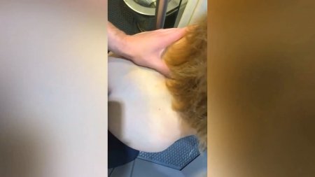 Сосет в поезде при подруге