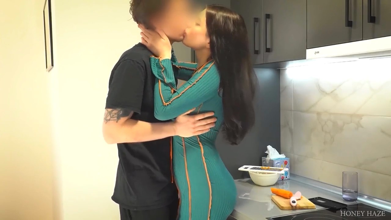 Красивая русская девушка занималась готовкой на кухне. По ходу дела мы выясняем, что режет овощи она не для себя и своего парня, а для гостей, которые должны прийти примерно через час. В это время бойфренд подходит сзади и сообщает о том, что его очень заводит, когда подружка готовит. Симпатяга поворачивается к нему лицом, получает заслуженный поцелуй, а потом поворачивается обратно и немного пригибается, чтобы кучеряшка ей засадил в успевшую намокнуть киску. Буквально несколько минут и она оказалась попой на кухонной столешнице. В этот период секса молодой человек засадил пальцы в писю и заставил кончить сквиртом под просящие быть более жестким возгласы милахи, ставшей снова раком ногами на стул.