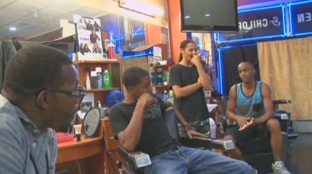 Болельщицы бывают разные и болеет каждая за свою команду, но одно объединяет девушек - ради своих кумиров телочки пойдут на все. Ребята заскучали в своей гримерной и один из парней позвонил знакомой, как раз фанатке их творчества. Доступная худенькая шлюшка примчалась к мужикам и занялась с ними сексом с превеликим удовольствием. Четверо парней по очереди отымели телку и обкончали ей лицо.