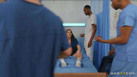 Оказавшись в больнице, итальянская красотка не смогла оставить обычных привычек. Например, она часто мастурбирует и любит соблазнять мужчин, особенно незнакомых, где-нибудь в ночном клубе. Прямо сейчас ее попросили раздеться и лечь спокойно, но она все не унималась и пыталась показать то попку, то свои сисечки. Было двое врачей, а стало четверо - это еще больше возбудило шаболду, которая напросилась на групповуху, заставив докторов отвлечься от остальных пациентов, чтобы пустить курносую по кругу и совершить двойное проникновение, после которого все по очереди кончили на ее личико.