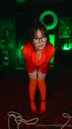 Все друзья куда-то потерялись и Велма осталась одна. Она нашла тихое помещение с инопланетным монстром, с которым завела беседу. Он ничего не отвечал, но и не нападал, зато его большой зеленый пенис торчал и привлекал слишком много внимания девчонки в очках. Велма из Скуби-Ду решила воспользоваться ситуацией и немного поприседать на странный фаллоимитатор сверху, приподняв юбочку так, чтобы было видно ее сексуальную попку. Ведь не обязательно же рассказывать остальным чем она тут занималась несколько минут, верно же?!