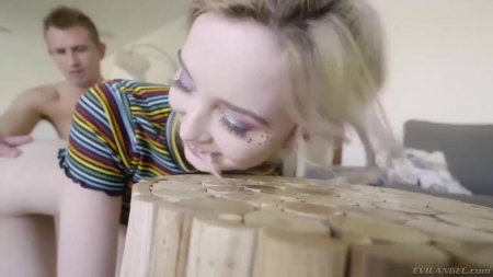 Милашка с приклеенными блестками на щеках уверенными шагами идет к своему приятелю, чтобы получить его... Яйца. Да, вы не ослышались, блондинке нужны яйца и она их получит любой ценой. Как только она посадила свою красивую попочку на чужой стол, она начала гладить ножками по паху знакомого, а потом дала просунуть в анал его пальцы. Вскоре он ее ебал во всех позах, используя рот как какую-то заглушку, а попка блондиночки была ошарашена жесткой еблей. Яички в итоге она получила двумя способами: парень просунул собственную мошонку через анус девицы, а следом и вовсе разбил настоящее куриное яйцо прямо в черную дырку.