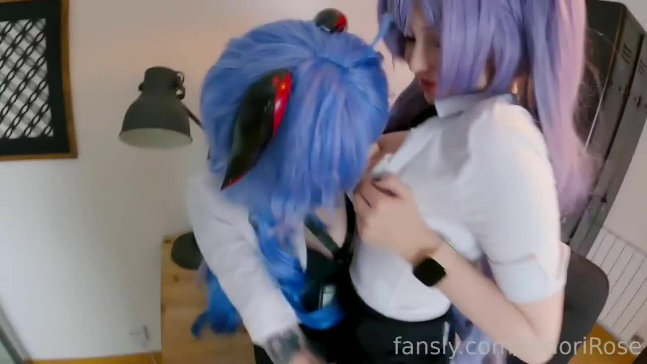 Две милые, аж пищащие как азиатки, девчонки в чулочках с прикольным цветом волос познакомились в офисе когда одна отдавала бумаги второй. Новые подружки тут же занялись кунилингусом на столе, но их побеспокоил очкастый сотрудник, подрочивший киску развратной коллеги без спроса. Ботану начали сосать его небольшой хуец, а там и еще один парень подоспел на отсос, пока их бесплатно раздают аниме-тяночки. Видимо, для бисексуалок размер мужского полового органа не так важен как красота груди или вкус кисок.