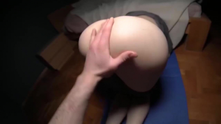 Вернувшись из кухни, молодой человек застает любимую, засунувшую голову под кровать. Она шепотом сообщает будто бы застряла и просит помощи, но вместо этого муженек стягивает с классной задницы обтягивающие легинсы и начинает играться с половыми губами подружки, нежно поглаживая ее по шикарным ягодицам. Член еще толком не поднялся, но парню уже захотелось присунуть застрявшей. Когда он кончал, то попытался залить обе дырочки снаружи, а потом решился вставить в ту дырочку, что манила нас весь ролик - именно в скворечнике хуй поставил жирную точку этого видео.