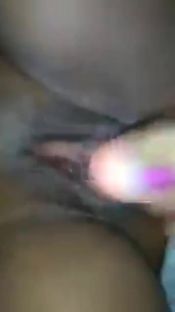 Муженек уже выдохся трахать вторую половинку этим вечером, член банально уже не стоит. Но у пары есть секс-игрушки, например, небольшой светлый дилдо, полностью занимающий черную киску супруги по ширине, ведь дырочка у нее маленькая и ей приятно от того как половые губки скользят по этой классной штучке. Сожитель же снимает мастурбацию крупным планом на телефон, на котором прекрасно слышно как женщине хорошо от гуляющего туда-сюда дилдо, негритяночка стонет на весь дом, и хорошо, что он хотя бы реальный дом, а не апартаменты.