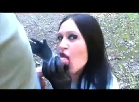 Красивая готичка вместе с бойфрендом поехала прогуляться на природе, где они вместе наткнулись на чужую ферму с лошадьми за забором. Это показалось немцам идеальным местом, где можно показать сочную натуральную грудь неформалки, а также ее киску без волос рядышком на лавочке. Немка здесь не только для того, чтобы перекурить перед следующим заходом погулять, она сосет сигареты и вместе с дымом берет в рот у своего спутника, из-за чего по его стволу проходит приятный холодок, помогающий ему кончить на грудь прекрасной подружки с черными волосами.