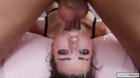 Пошлая извращенка с узнаваемым взглядом улыбается во все 32 зуба когда у нее спрашивают готова ли та принять трах глотки и всего лица. Естественно, именно для этого молодая красотка здесь и собралась вместе с двумя докторами по лечению заложенности горла. Оба мужика грубо насаживают голову брюнетки на свои перевозбужденные члены, отчего у той слюна растекается по всему лицу. Девку вертят как хотят и вскоре каждый по очереди ей спустил в блядский ротик, широко открывая шлюхе глаза, чтобы она смотрела на зрителя через камеру. Face Fucking Inc 1 - 05 - Sasha Grey.