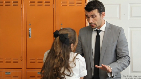 Симпатичная студентка волнуется перед тестом и решает себя "обезопасить" и найти ответы на тест. Для того, чтобы осуществить задуманное, симпатяга тайком пробралась в кабинет и удача улыбнулась девушке - телочка нашла правильные ответы. Окрыленная столь быстрым результатом, сексуальная крошка решила удовлетворить себя на учительском столе. И снова прелестной студентке везет - за мастурбацией похотливую сучку застает преподаватель и трахает ученицу в разных позах.