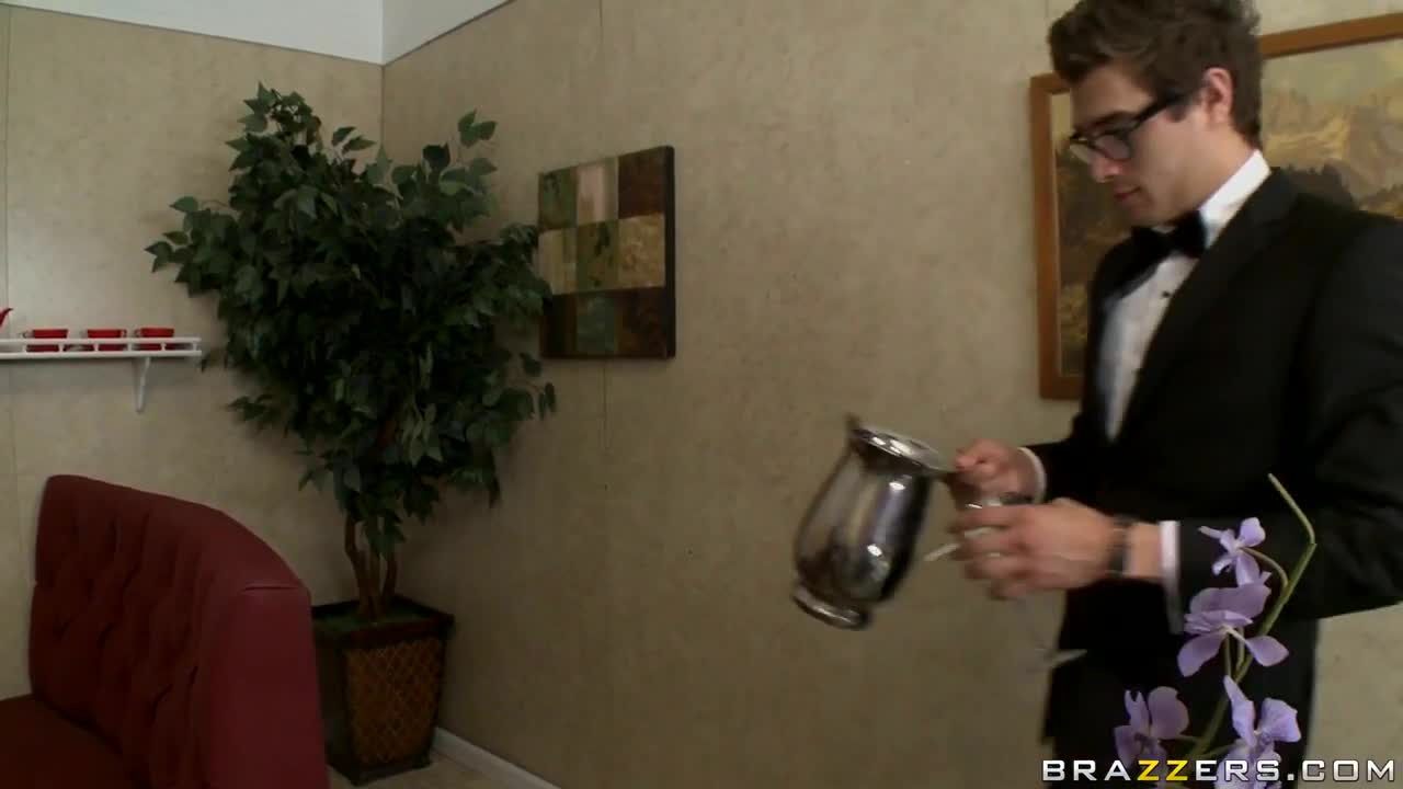 День Матери, приемному сыну, а также мужу совершенно наплевать на грудастую милфу. Это была последняя капля и, чтобы окончательно не сорваться, женщина заказала столик на одну персону в ресторане. Внутри ее встретила хозяйка заведения, отдавшая клиентку в руки обходительным официантам. Их было сразу двое - молодые молодчики в костюмах сделали массаж плеч, но до еды дело не дошло, так как вскоре сочная дама отсасывала глоткой сразу два члена, а после официанты трахали гостью на столе посреди зала, все равно в этот день наплыва клиентов не ожидалось, как не ожидала и героиня такого количества фонтанирующей спермы ей на лицо.