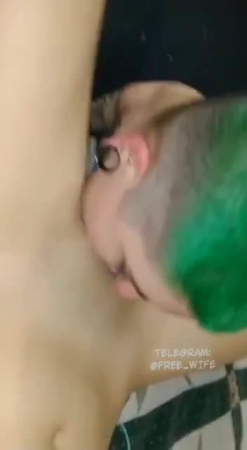 Из этого дома стоны доносятся практически постоянно и вот почему: здесь живет сексуально развращенная троица - две бисексуалки, больше похожие на типичных лезбух с короткими крашеными волосами, а также их любимчик - любящий шевелить без умолку языком парнишка. Он первую часть видео записывал на телефон как телки по очереди вылизывают друг друга, а после дал им обеим пососать член. Та, что с рыжими волосами наслаждалась облизыванием мужских яичек и основания ствола, зато с зелеными волосами губками работала по всей длине, стараясь не мешать самой любимой подружке. Но рыженькая лучше работает руками.