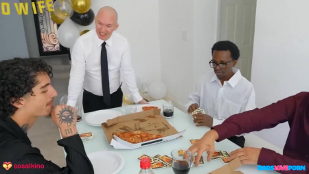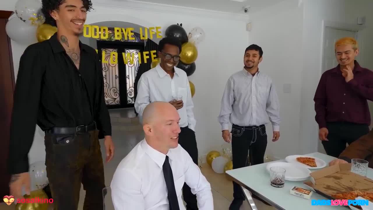 Друзья заранее распланировали мальчишник их верного товарища, решившего вскоре надеть кольцо на палец. Он с девушкой провстречался целых пять лет и теперь у него не будет возможности отрываться как раньше. В честь этого парни заказали самую настоящую порноактрису - грудастую молодую девушку с красивым лицом. Она не сильно умеет танцевать стриптиз, но дергать задницей - уже такое было. Мужику дали время уединиться с красивой телкой и оттрахать ее как в последний раз. Собственно, именно в последний раз он себе позволяет поразвлекаться перед верной жизнью с любимой женщиной.