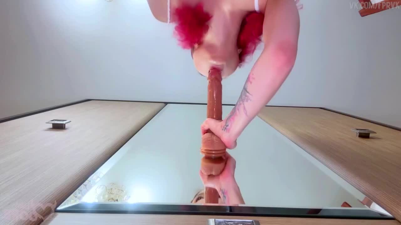 Очень привлекательная извращенка любуется своей изощренной фигуркой перед зеркалом. Она поднимает платье и хвастается ножками, опускает его лямки и показывает очень маленькую красивую грудь. Трусики отправляются на пол, хозяйка поворачивается к зеркалу спиной и немного наклоняется в нашу сторону - она собирается устроить себе двойное проникновение с секс-игрушками, которые приклеила на липучки к тому самому зеркалу, хотя сперва малышка с розовыми волосами насаживалась только писей и на одну, а в конце кроме двух дилдо внутри она помогала себе закончить шликая рукой по клитору.