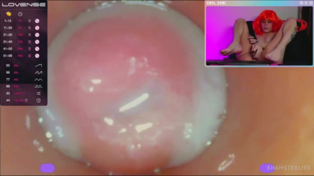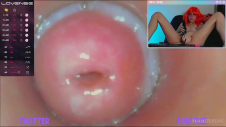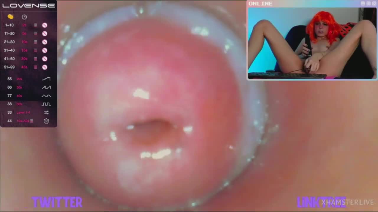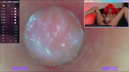 Моделька-экспериментатор Melissa XXS PIE услышала просьбы зрителей трансляции вставить стеклянную трубку с камерой внутрь вагины. Она смазала ее рукой по всей длине и стала неторопливо вводить внутрь, показав себя на весь экран, а потом и крупным планом видео с той самой камеры, что уже находится внутри ее влагалища. Это буквально то, что обычно видит головка члена, пробуривая розовые женские внутренности. Дабы все было как взаправду, малышка взяла для дополнительного кайфа вибратор и от двойного удовольствия вскоре смогла испытать оргазм - трубочкой она дрочила, а вибратор нужен был для клитора снаружи.