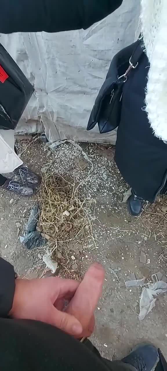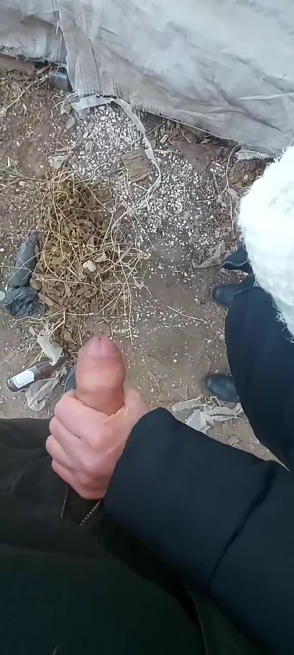 Неизвестно при каких обстоятельствах троица оказалась за какими-то разбомбленными гаражами в холод, но суть в том, что парень дрочил член при двух телочках и предложил кому-нибудь "попробовать". Та что справа с удовольствием взяла его хуй в крепкую руку и стала гонять его шкурку, стоя сбоку. На просьбу вторая не ответила положительно, но сказала, что просто посмотрит. Так продолжалась съемка на телефон несколько минут пока из головки на землю не показала сперма. Девица все сильнее сжимала ствол, легонько подрачивая, будто пыталась выдавить оттуда все без остатка. Молодому человеку очень это понравилось.