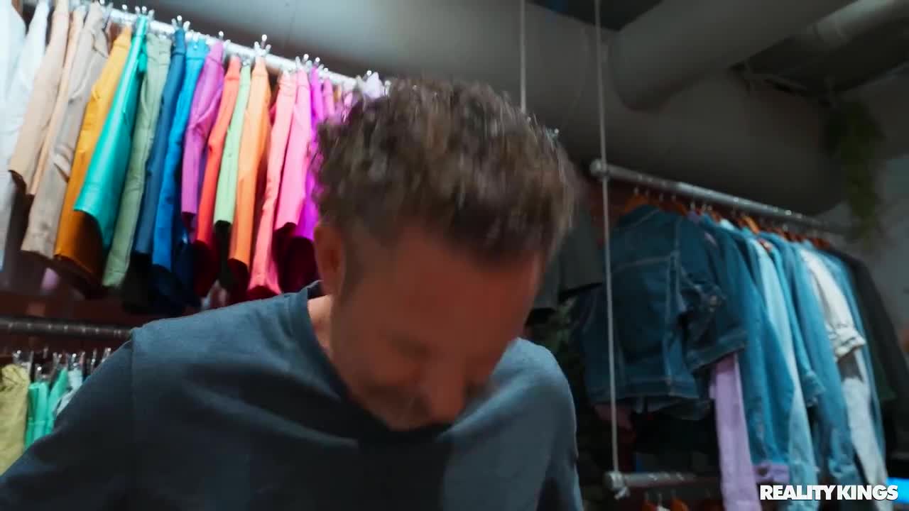 Сочная негритянская тридцатилетняя бабень Cece Wetdreams притащила мужика и свою огромную задницу в магазин прикупить новомодных вещей. Игривая негритяночка то и дело светила прелестями и уже начала бы мастурбировать при снимающем на камеру муже, но чернокожей шлюшке попался незнакомый парень, которого она соблазнила на секс в примерочной. Кассирша все это время болтала с кем-то по телефону, а покупатели то и дело натыкались на нескольких извращенцев. Кучерявая негритоска смотрела на свое кайфующее лицо в зеркале, а мы наслаждались ее шикарным черным задом, особенно крутым с видом сверху когда она стоит раком.