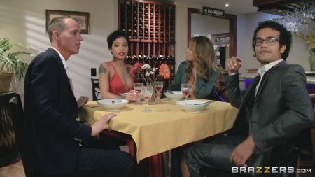 Две пары встретились в ресторанчике. Во время ожидания заказа короткостриженная сучка начала приставать к знакомой, гладя ее ногу под столом. Под предлогом "попудрить носик" милашки вышли из-за стола и уединились в туалете, где без лишних прелюдий кинулись в объятия друг друга. Девушки подрочили друг другу секс игрушками и полизали, а потом вернулись к ничего не понимающим мужчинам.