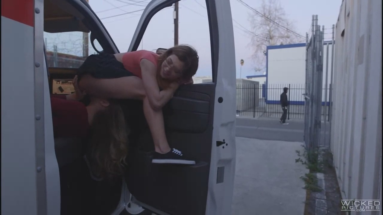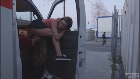 Две лесбияночки неплохо проводят время - одна девушка на сиденьях лежит, а вторая прелестница раздвинув ножки "повисла" на двери автомобиля, подставив мокрую дырочку для горячего язычка. Проходящие мимо люди только распаляют страсть девушек и прелестные подружки продолжают еще активнее.