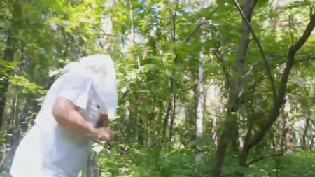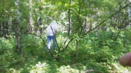 Молодой человек полностью обнаженный по лесу идет и пипиську теребонит. И неожиданно парень натыкается на бабушку. Надо отметить, что бабуля члена как такового не испугалась - она еще и моральную поддержку парню оказала - и поговорила с ним и утешила, вот только к себе подходить близко не разрешила. И вот от слов пожилого человека и от постороннего взгляда парень бурно кончил.