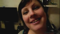 Симпатичная шалава играла со знакомым в карты и проиграла (брюнетка заранее знала исход игры) три желания. А как известно, долг платежом красен. И короткостриженная сучка сначала показала язык (первое и довольно легкое желание), вторым желанием стало показать сиськи (без доли сомнения телка подняла футболку и показала большую грудь). Ну а третьим желанием стал минет, а потом сперма на лицо.