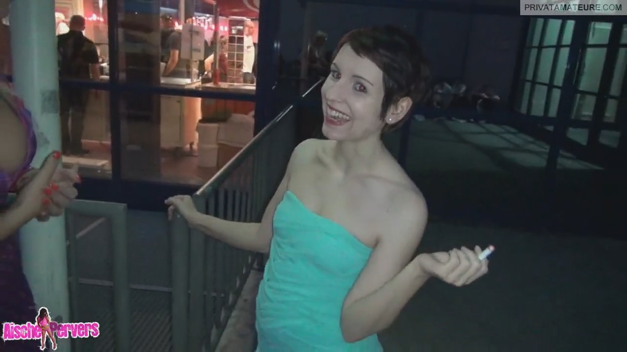 Aische Pervers вместе со своим оператором находит симпатичную телку для секса втроем. После недолгих поисков Аиша находит возле торгового цента симпатичную короткостриженную девушку по имени Ванесса. Вдвоем телки сосут член оператора. не особо то от людей посторонних скрываясь. Очаровашки доводят мужика до оргазма, а потом с обнаженными сиськами идут на выход из центра.