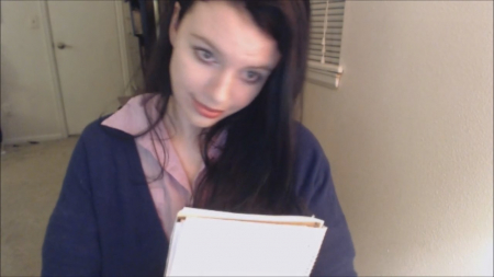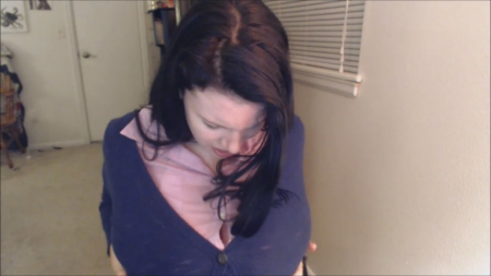 Симпатичная телка с огромными сиськами перед камерой записывает свой монолог. Но во время записи довольно странная дамочка резко возбуждается и начинает трогать аппетитную плоть. Потом так же резко девушка "возвращается" в обычное состояние и продолжает говорить. Но волна снова накатывает - только еще сильнее - и симпатяга начинает трахать себя пальцами.