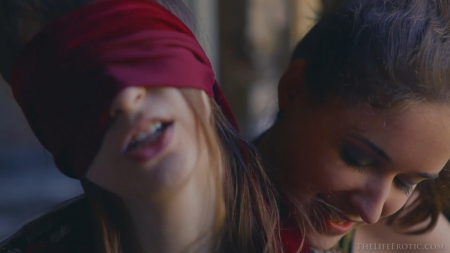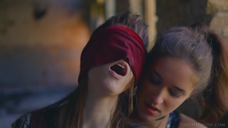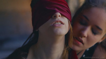 Сексуальная девушка согласилась на не совсем обычный секс с другой девушкой, даже с незнакомкой. Условия были таковы, что стройняшка не увидит своего сексуального партнера, ибо вторая девушка пожелала остаться инкогнито. В общем то русая милаха с завязанными глазами получала приказы от жгучей брюнетки и послушно выполняла их (например, погладить клитор, засунуть пальцы в вагину и потрогать грудь). Получилось соло прелестной телки с завязанными глазами и лишь некоторая помощь от брюнетки (больше возбуждала таинственность).
