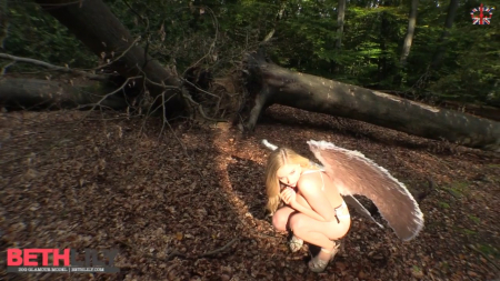 Эротическая фотосессия грудастой блондинки. Симпатичная девушка с очень аппетитными формами демонстрирует свое сексуальное полуобнаженное тело. Сначала девушка одета в купальник и за спиной у нее два огромных белых крыла. Потом белокурый ангел снимает с себя лифчик и показывает большую сочную грудь.